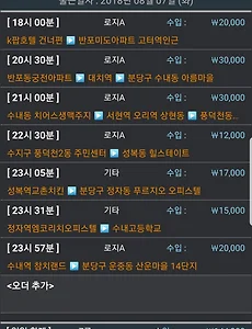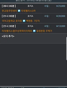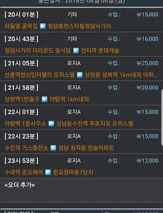 반응형 전체 글332 2018.08.07 화요일 대리운전 일기 2018년 08월 07일 화요일 운행일지 1.역삼동 K팝 호텔 건너편 -> 반포 미도 아파트 18시 06분 20,000원 2.반포동 궁전아파트 -> 대치역 -> 분당구 수내동 아름마을 20시 30분 30,000원3.수내동 치어스 맥주집 -> 서현역 -> 오리역 -> 용인 상현 롯데캐슬 -> 풍덕천 한일아파트 21시 00분 30,000원4.풍덕천동 2동 주민센터 -> 성복동 힐스테이트 22시 30분 12,000원5.성복동 교촌치킨(성복역) -> 분당구 정자동 푸르지오 오피스텔(정자역 인근) 23시 05분 17,000원6.푸르지오 오피스텔 바로 옆 코리치오피스텔 -> 수내동 수내고등학교 23시 31분 15,000원7.수내역 참치랜드 -> 분당구 운중동 산운마을 14단지 20,000원 이날 다시 최고 신기록을.. 2018. 8. 8. 2018.08.06 월요일 대리운전 일기 최다콜을 탄 날이다. 2018.08.06 월요일 1. 라움 옆 식당 -> 청담 사거리 인근 오피스텔 15,000원2. 청담사거리 인근 더 라운지 중식당 -> 한티역 롯데 캐슬 16,000원3. 선릉역 한신인터밸리 오피스텔 -> 용인 성복역 인근 1KM 내외 25,000원4. 용인 상현역 -> 야탑역 1KM 내외 15,000원 팁 5,000원5. 야탑역 야탑1동주민센터 -> 성남동(수진역)푸르지오 오피스텔 15,000원6.수진역 바로옆 가스충전소 -> 성남 정자동 한솔아파트 1차 15,000원7.수내역 준오헤어 -> 판교원 마을 7단지 12,000원 차량이 BMW라 익숙치 않은 모습에 기분이 나빴는지사실 인성부족한 것 같다 실내에서 계속 담배태우고...ㅜㅜ어쨌든 이렇게 첫콜을 마치고 바로 인근 2번째 콜을.. 2018. 8. 7. 2018.08.05 일요일 대리운전 일기 1. 판교동 주민센터 -> 도곡도 타워펠리스 3차 20,000원 대기비 5,000원 이번에 처음으로 일요일에도 대리운전을 하게되었다.늘 집에 있었는데 이날은 집이 그나마 안정화가 되어서 콜을 보고 있다가 좋은 콜 다 놓치고 이 콜이 제일 괜찮아 바로 클릭하여 갔는데 판교 테크노벨리에서 콜을 잡아서 이동해야 한다고 기달려 달라는 것이다.약 30분이상을 기다리고 운전을 하게 되었다.그래도 쉬운 콜이기에 다행 2. 도곡동 타워펠리스 인근 아파트 -> 일원본동 12,000원 팁 1,000원처음에 일산인줄 알았는데 금액이 아닌것 같아서 잡았다.이거 잡기 전에 좋은 콜들이 많았느데 놓쳐서 이거라도 타고 이동해야지 라는 생각에!!! 3. 국악고등학교 -> 백현동 5단지 20,000원일원본동에서 택시비로 4,500원정.. 2018. 8. 6. 2018.08.02 목요일 대리운전 일기 휴가 중에도 대리운전을 계속적으로 진행하였다. 1. 남서울 CC인근 식당 -> 과천경마장 -> 안양 40,000원 손님이 이야기가 없다가 다 와가니 과천경마장만 가면 된다고 하시고 경마장내에서 내리면 걸어가는데 1시간 이상 걸리니 과천경마장역까지 데려다 주겠다고 하셨다.그리고 팁으로 1만원까지 참 고마운 손님이시다 2. 과천 경마장 역 -> 수원 장안구 정자동 23,000원콜이 없는 지역이라 바로 지하철을 타니 있던 곳에서 콜이 떠서 바로 전화하여 콜을 잡았다.이 손님은 친절한 척 다하시면서 거울이든 자리든 바꾸면 안된다고 하네....운전을 어떻게 하라는 것인지.ㅜㅜ완전 낭패다 본인이야기를 하다 층간 소음 이야기를 하는데 그런 성품이면 주위분들이 참 힘들겠다라는 생각이....ㅜㅜ 3. 수원 장안구 화서2.. 2018. 8. 6. 2018. 08. 01 수요일 대리일기 이날은 늦게 나오기도 했고 첫콜후 너무 가렸다 시간이 길어지다보니 판단력도 흐려지고 전체적으로 실패하였다 복기하여 추후에는 더나아지도록 해야겠다 2018. 8. 1. 2018. 07. 31. 화요일 대리일기 이날은 일찍 시작하였지만 생각만큼 콜을 잘타지 못했다 콜사이 텀도 길고 대기라는 것도 해보고ㅜㅜ 명함교환에 타이어터지기 일보직전의 차량운행까지ㅜㅜ 그래도 나름 선방한 날이다 2018. 8. 1. 이전 1 ··· 45 46 47 48 49 50 51 ··· 56 다음