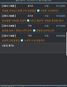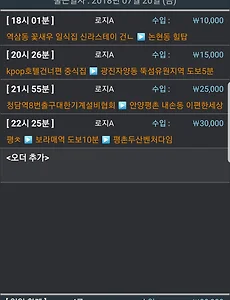 반응형 전체 글332 2018. 07. 30 대리일기 이날은 팁 제외하고 제일 잘탄날이다 순수익으로만 10만원이라니 스스로에게도 기분이 좋은 날이다 손님들이 조선족부터 기업인 여성까지 다양하였다 2018. 8. 1. 2018.07.26 금요일 대리운전 일기 어제는 유난히 힘든 날이었다.보통 목요일은 회식이 많아서 콜이 많은데 콜 선택을 잘못했는지 계속적으로 일정이 꼬여버렸다. 1. 역삼동 르네상스 호텔 인근 삼저호텔(현대글로비스 손님) -> 서초동 서초래미안(강남 교대 사이) 12,000원유난히 더위를 많이 타는 손님이다. 껌을 혼자 씹고 좀 나누어주면 좋으련만...ㅋㅋㅋㅋ 2.삼성생명 A동 지하 4층(강남역 인근) -> 6호선 월곶역 인근 아파트 25,000원이콜이 문제다 손님도 30분이 넘게 있다 도착하고, 도착지에서 콜도 하나도 없고 이날 패착의 주요 원인이다. 3. 신사동(논현역 4거리) 인근 횟집 -> 수내 초등학교 20,000원카카오로 불러서 갔는데 확정금액 2만원에 가니 뭔가 괜히 기분이 나쁘고 수내초등학교인근도 아니라서 더욱 기분이... 4... 2018. 7. 27. 2018. 07. 24. 화요일 대리일기 어제는 외근으로 일찍 퇴근하여 동네에서 일을 시작하였다 시작이 나쁘지 않고 대부분 좋은 콜로 잘 이끌어졌다 단 팁이 제로인게 좀 아쉬웠고 마지막 콜손님이 콜 취소를 하느 바람에 추후에 만원을 넣어준다고 했는데 아직까지 넣어주지 않았다 오늘은 좀더 좋은 날이 되었으면 2018. 7. 25. 2018. 07. 23. 월요일 대리일기 이날은 업무가 10시쯤 끝나 간신히 콜을잡고 이동했다 주소도 정확하지 않았지만 우선 제일 비싼콜이기에 잡았는데 역시나 오지 ㅋ ㅋ 다행히 근처 이동이 어렵지 않아 빠져나왔다 단 후속콜이 한건도 없어서 다음은 좀더 잘하자 2018. 7. 25. 2018. 07. 20. 금요일 대리일기 이날은 집으로의 복귀가 아닌 회사로 복귀 후 회사 차량을 가져가야 하기에 패턴이 많이 바뀌었다 #용인 #수원 지역으로 이동하지 않고 서울지역만 다니려고 하다 좋은 콜을 많이 놓쳤다 마지막 콜의 경우 손님이 너무 좋은분이셨다 좋은 이야기를 많이 해주시고 팁까지 넉넉히 주셨다 보라매에서 강남쪽 복귀를 하려고 하는데 역시 그런콜은 없었다 집복귀콜은 많았는데 집으로 갈까했는데 그랬으면 순매출이 10만대까지 갔을텐데ㅜㅜ 아쉽다 2018. 7. 22. 2018. 07. 19. 목요일 대리일기 서울지역의 콜 및 운행은 시간이 역시 많이든다 기본 40분 정도 소요되는 것 보면 장거리 콜을 잡는것이 좋은것 같다 그런데 강서쪽이나 일산쪽은 시간이 너무 많이 소요되기에 고민이다 이날은 손님이 그닥 좋은 분은 없었다 마지막 안국쪽에서 잠실4단지가는 손님은 계속 경유요청을 막무가내로 하셔서ㅜㅜ 그래도 안전하게 무사하게 하루 마무리에 감사드린다 2018. 7. 22. 이전 1 ··· 46 47 48 49 50 51 52 ··· 56 다음
