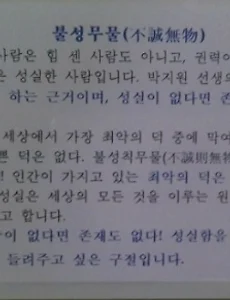 반응형 전체 글332 좋은 글_불성무불(不誠無物) 어제 지방 출장 중 휴게소 화장실에 걸려있던 글귀인데 너무 와닿아서 공유합니다. 불성무물세상에 가장 강한 사람은 힘 센 사람도 아니고, 권력이 강한 사람도 아닙니다. 세상세어 가장 강한 사람은 성실한 사람입니다.박지원 선생의 연암집에 보면 성실은 세상의 모든 존재를 있게 하는 근거이며, 성실이 없다면 존재도 있을 수 없다고 강조하고 있습니다. 부덕지흉은 세상에서 가장 최악의 덕 중에 막여불성이라! 성실하지 못한 것 보다 더 나쁜 덕은 없다. 불성칙무물이라! 성실함이 없으면 어떤 존재도 있을 수 없다! 인간이 가지고 있는 최악의 덕은 불성실이라는 것입니다. 그래서 에도 보면 성실은 세상의 모든 것을 이루는 원리이며 성실함이 없다면 어떤 존재도 있을수 없다고 합니다.불성무물이라! 성실함이 없다면 존재도 없다.. 2017. 4. 7. 커피 한잔 2017.04.04 화요일 회사 업무차 충북 오창에 방문을 하였다.업무를 마치고 시간이 조금 비어서 세종시에 근무하는 동생을 만나러 갔다.약 30분정도 차를 타고 가니 동생이 근무하는 곳에 도착하여 회사 로비에서 커피 한잔을 하였다,. 내가 피곤하다고 하니 동생이 급하게 매점에서 사탕 껌 등 주전부리를 사다주었다.동생의 세심함은 나보다 더한 것 같다.남에게 피해 안주려고 하는 마음인 거의 탑인것 같다.(가족들에게만 그런 마음 더 가지면 좋은데.....) 어쨌든 오랜만에 동생과 이런저런 이야기를 주고받으니 좋네어렸을때는 매일 붙어 다녔는데 이제는 각자의 삶의 터전에서 열심으로 일하느라얼굴보기가 어렵네..... 30대가 지나고 40대가 지나도형제는 좋은 것 같다.가족은 가족이다. 2017. 4. 6. 이전 1 ··· 53 54 55 56 다음