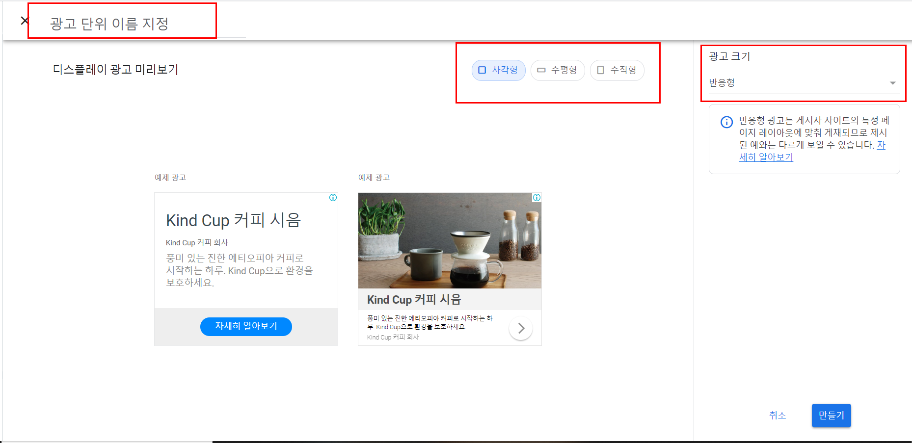 제일 좌측에 있는 "디스플레이 광고" 를 체크한다(이건 어디까짖나 개인적인 의겨입니다.)