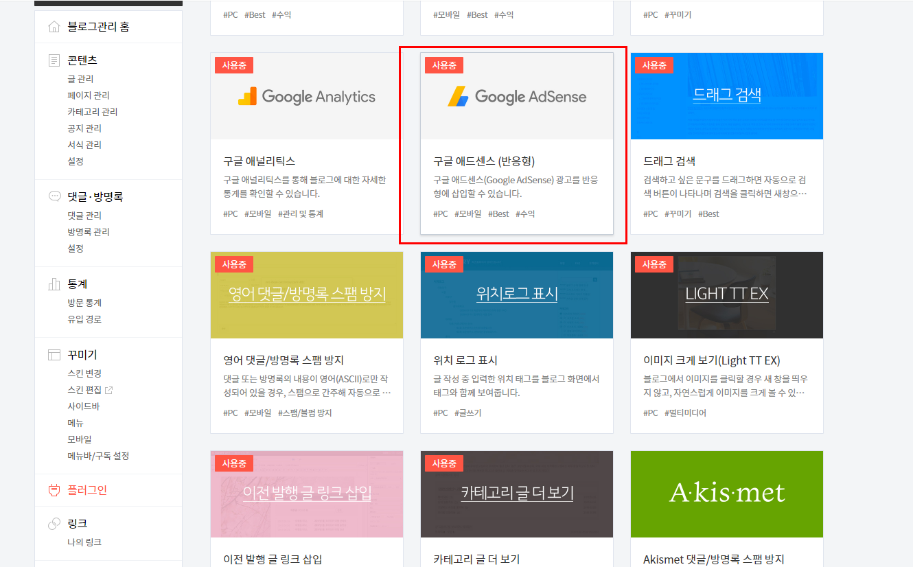 그후 구글애드센스승인을 받은 티스토리 블로그에 방문을 합니다.