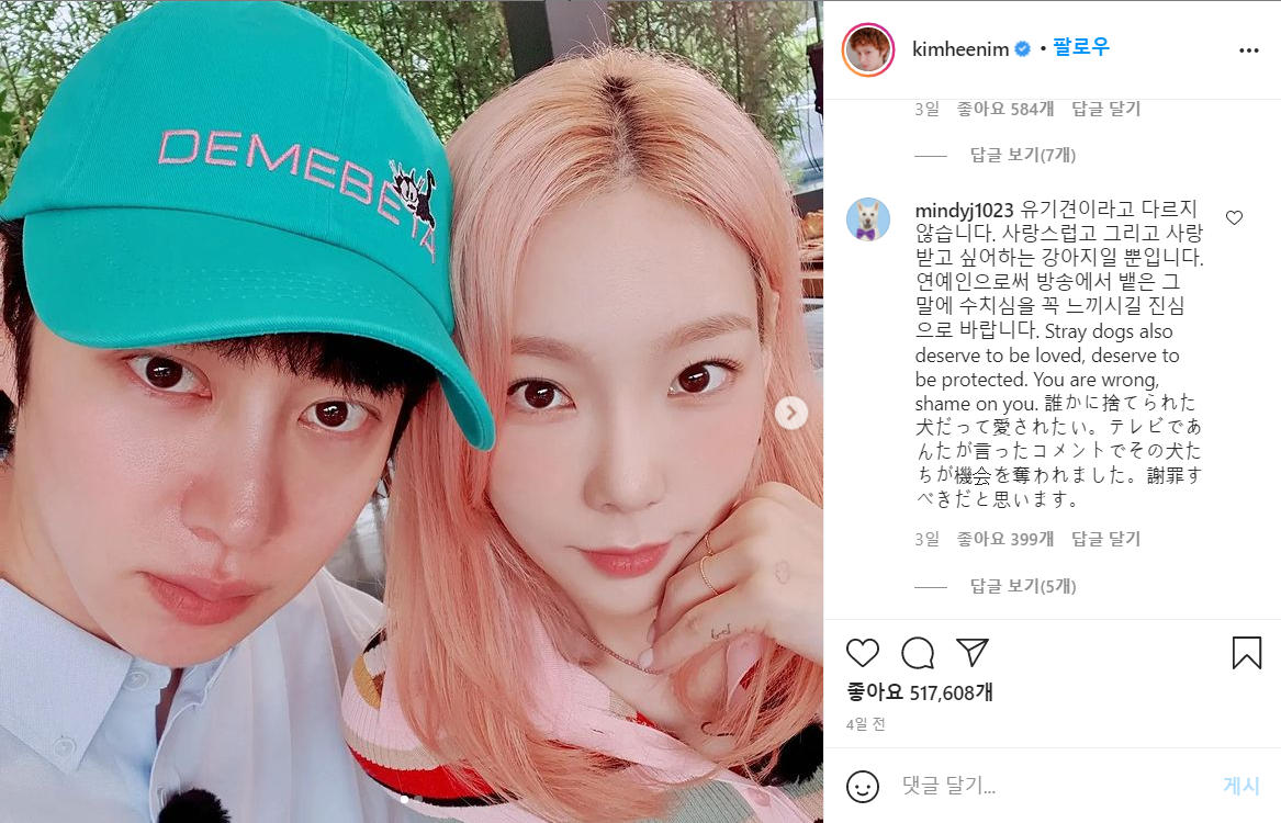 유기견들이 상처를 받았을수도 있을것이고 이 글을 보는 김희철씨도 상처를 받았을 것이라고 생각된다.