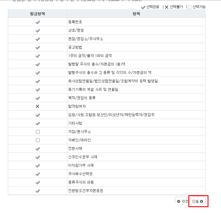 공란은 모두 클릭하면서 다음을 눌러주시면 됩니다.