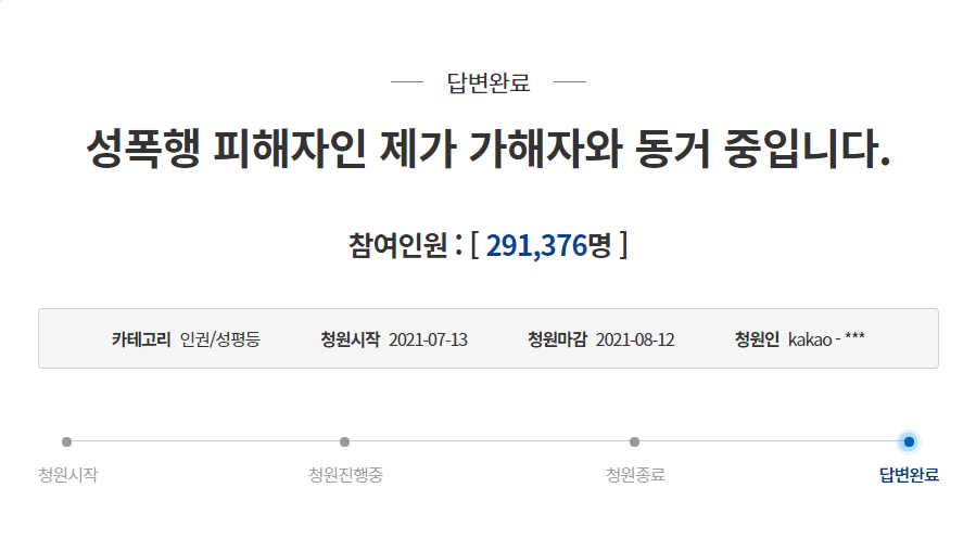 본인을 성폭행 한오빠와 함께 거주하고 있다는 청와대 국민민원에 올라와 화재가 되었습니다.