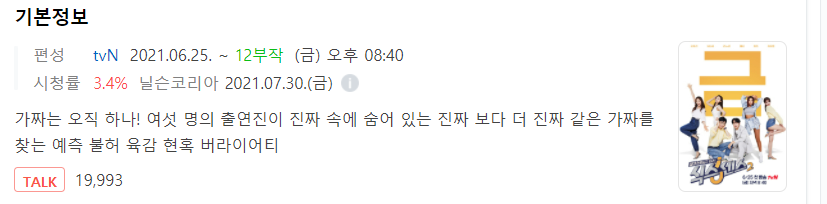 가짜는 오직 하나 여섯 명의 출연진이 진자 속에 숨어있는 진짜보다 더 진짜 같은 가짜를 찾는 예측 부러 현혹 버라이어티 라는 프로그램입니다.