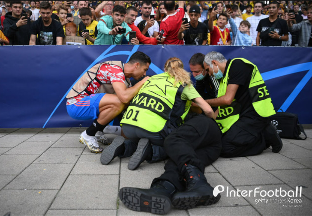 [인터풋볼] 김대식 기자 = 크리스티아노 호날두의 슈팅을 맞고 경기 관계자가 쓰러지는...