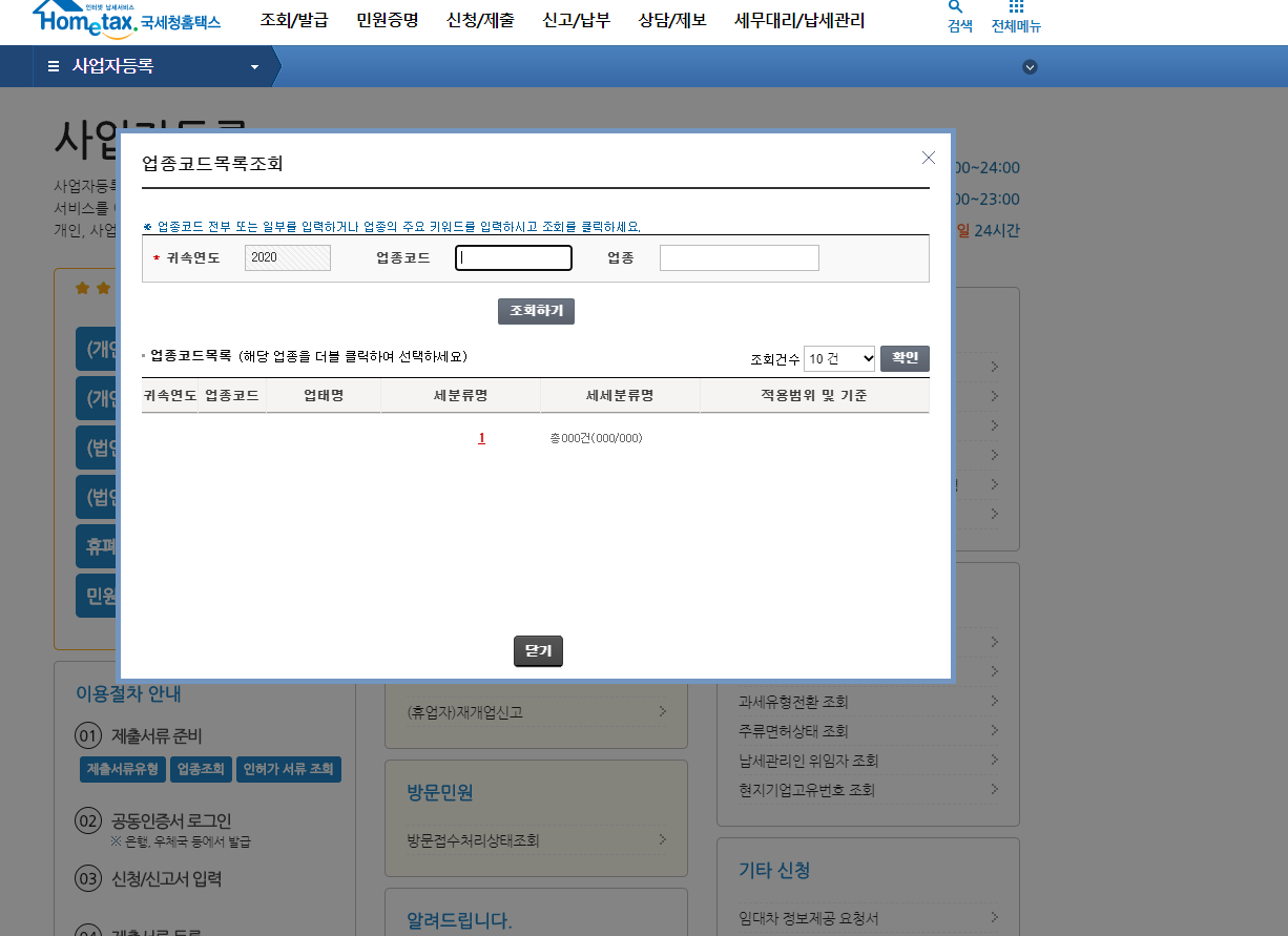 업종코드는 홈택스용 나라장터용 다양하게 있기에 사전에 확인을 하시는 것이 중요합니다.